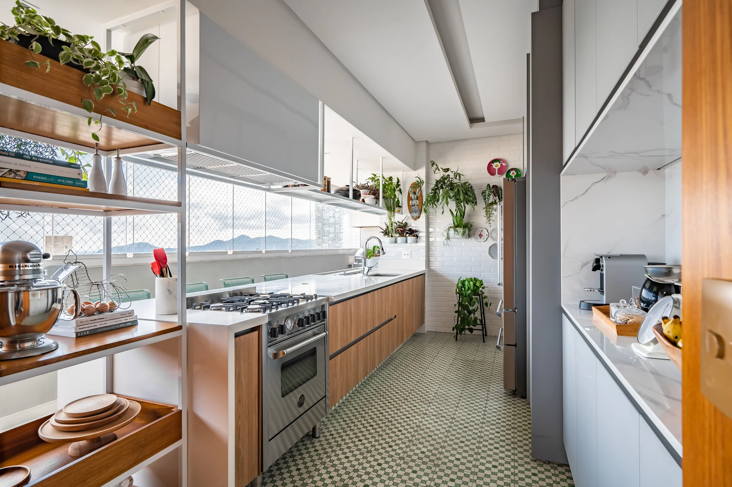 A cliente, uma jovem publicitaria, queria muito ter uma área maior para receber amigos e fazer pequenas festas, mas não queria entrar em uma grande reforma.